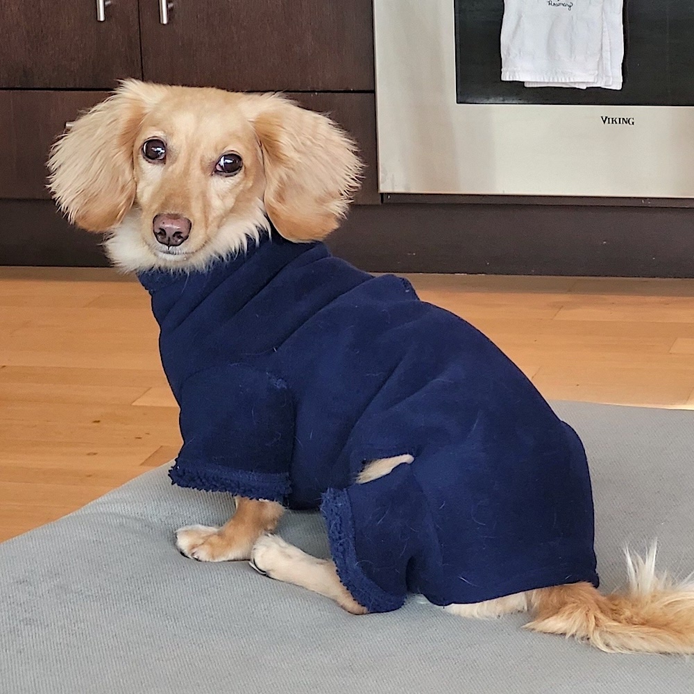 Dachshund Extra Heavy Fleece Bodysuits are the perfect way to keep your dog toasty warm in freezing winter weather. This very thick velour fleece blocks the wind, repels snow, and provides extra warmth in very cold conditions. It is styled for ease of movement, cut to allow all bodily functions and is easy to take care of. The Extra Heavy Fleece Bodysuit offers protection and warmth down to frigid temperatures. It should not be worn inside. These bodysuits are the ultimate in fashion and function!
