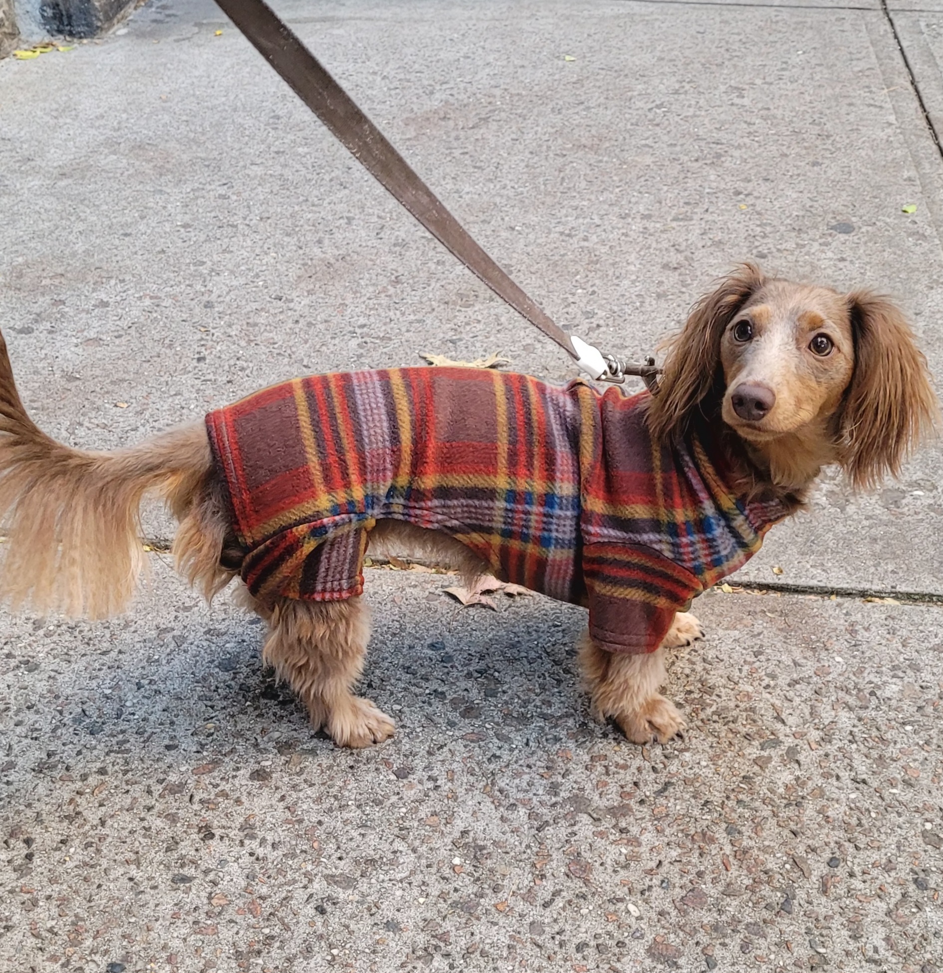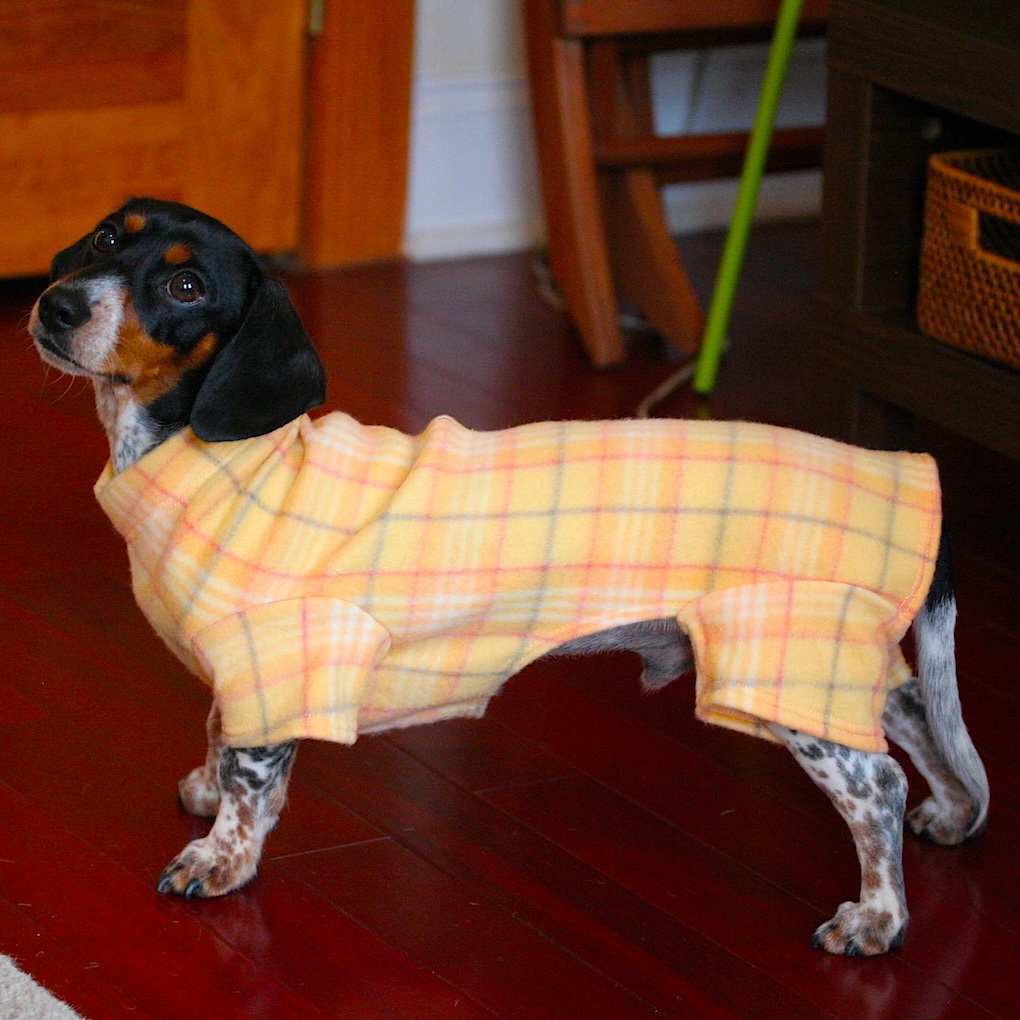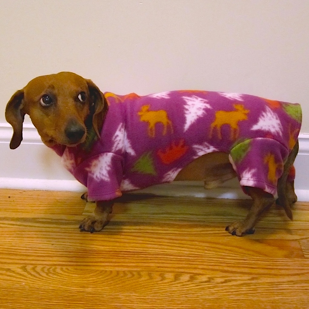 Dachshund Indoor/Outdoor Bodysuits are the perfect choice to wear inside and outside! A soft, medium weight fleece to wear for lounging, sleeping, walking, traveling and camping. Indoor/Outdoor Bodysuits block wind and rain, keeping your dog warm in chilly weather. Great to wear outdoors in the fall and spring, and all winter in moderately cold regions.