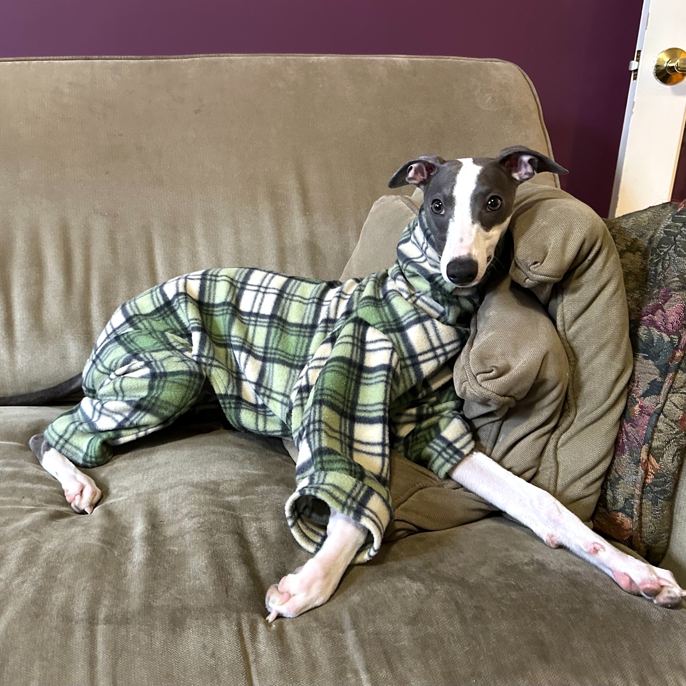 The midweight fleece of Whippet Indoor/Outdoor Bodysuits is perfect inside and out!